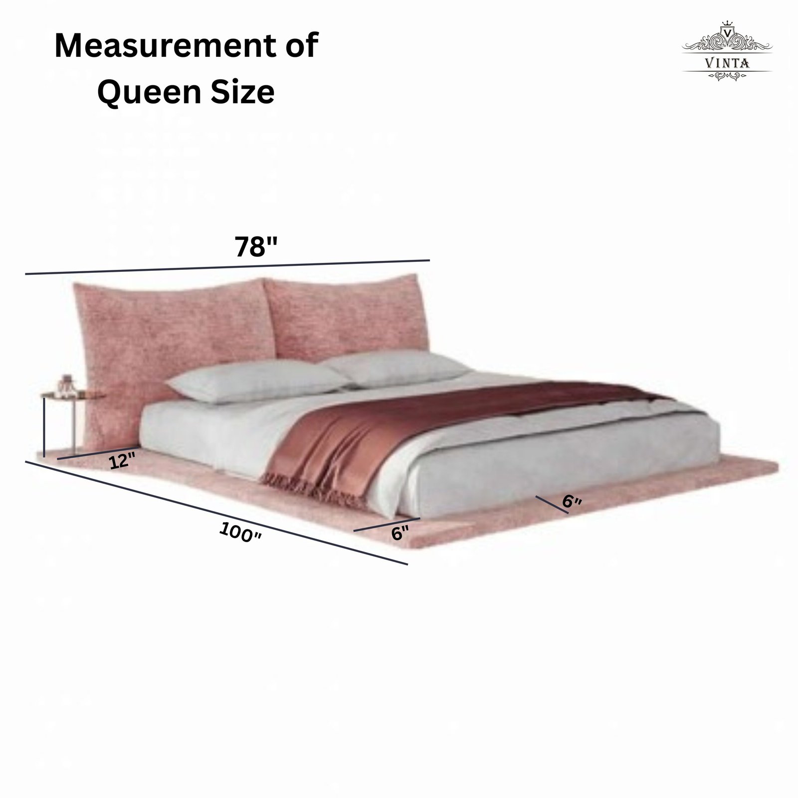 Queen:60″ -inches wide x 84″-inches long x “Standard”-inches high (Mattress Size)
