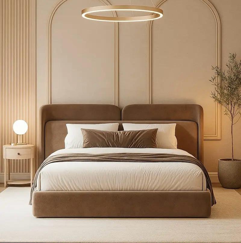 - “IMPEERIAL_REST” Bed will transform your bedroom into a royal retreat with the Daniel Upholstered Bed’s throne-like headboard and luxurious velvet upholstery.