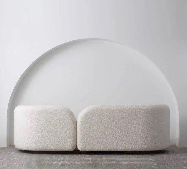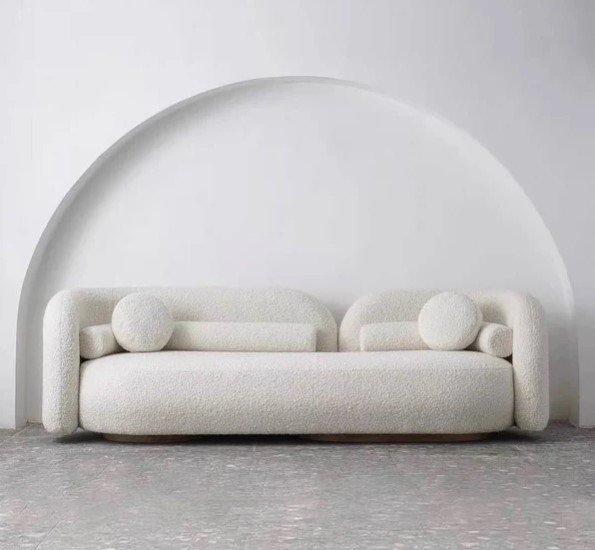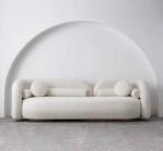 Modena_Comfort Sofa will make a modern and chic showstopper to any home decor. Upholstered in White velvet, the foam-filled seat and curved back provide great comfort. this curved sofa will suit your needs effortlessly.